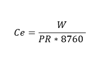 Ce - vēja elektrostacijas uzstādītās jaudas izmantošanas koeficients, procentos;
