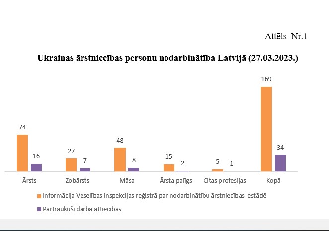 Šobrīd 321 personai ir izsniegtas atļaujas īslaicīgai nodarbinātībai ārstniecībā, no kurām profesijā strādā 169 personas, savukārt farmācijas jomas speciālistiem izsniegtas 47 atļaujas, no kurām nodarbinātas 28 personas.