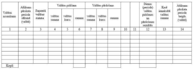 14. ailē – katras valūtas atlikumu pārskata perioda beigās.