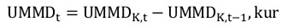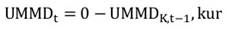 ja gada pēdējā aprēķina dienā DV ir vienāda vai mazāka par katra gada pēdējās aprēķina dienas DV iepriekšējo septiņu gadu periodā pirms kārtējā gada (ieguldījumu plāniem, kuru darbības termiņš ir īsāks par septiņiem gadiem, DV salīdzinājumam izmanto katra gada pēdējās aprēķina dienas DV un ieguldījumu plāna darbības uzsākšanas dienas DV) un ja gada pēdējā aprēķina dienā UMMD apmērs par kārtējo gadu ir pozitīvs, UMMD par gada pēdējo aprēķina dienu pārrēķina, izmantojot šādu formulu: