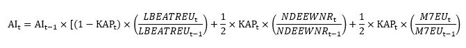 Sākot ar 2026. gada 1. janvāri, lai nodrošinātu AIP aprēķinu par laikposmu līdz 2025. gada 31. decembrim, pārvaldītājs ievēro šo noteikumu 4.2 punktā minēto AI sākotnējo vērtību un veic AI vēsturiskos aprēķinus, izmantojot šo noteikumu 4.11. un 4.12. apakšpunktā minētās vēsturiskās KAPt vērtības un šādu formulu: