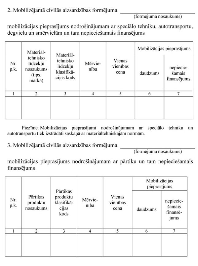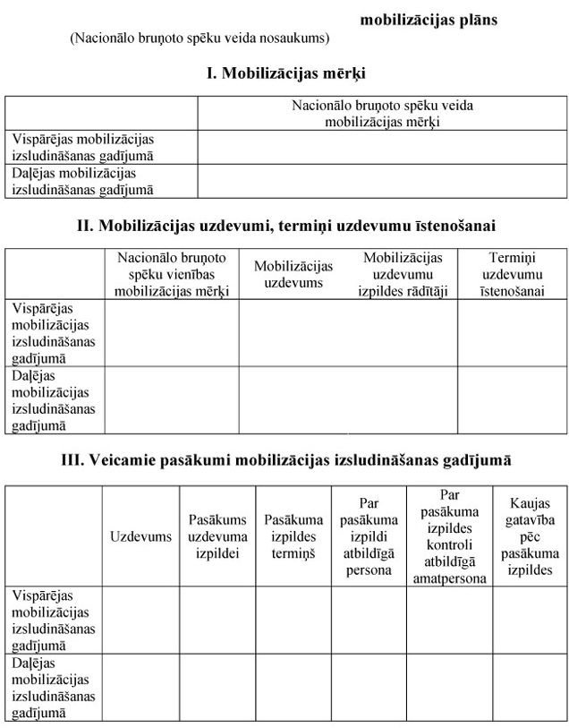 mobilizācijas plānu dokumentu veidlapu paraugus (1., 2., 3., 4., 6. un 7.pielikums);