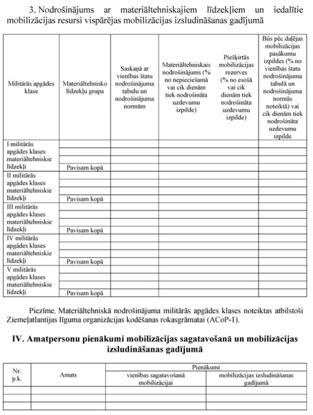 IV.Mobilizācijas plānu apstiprināšana un precizēšana