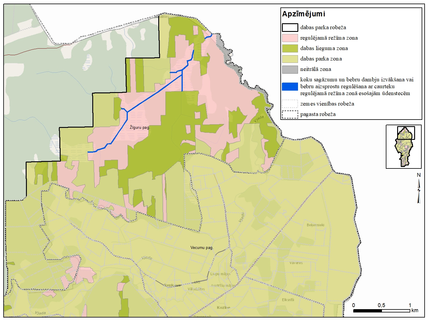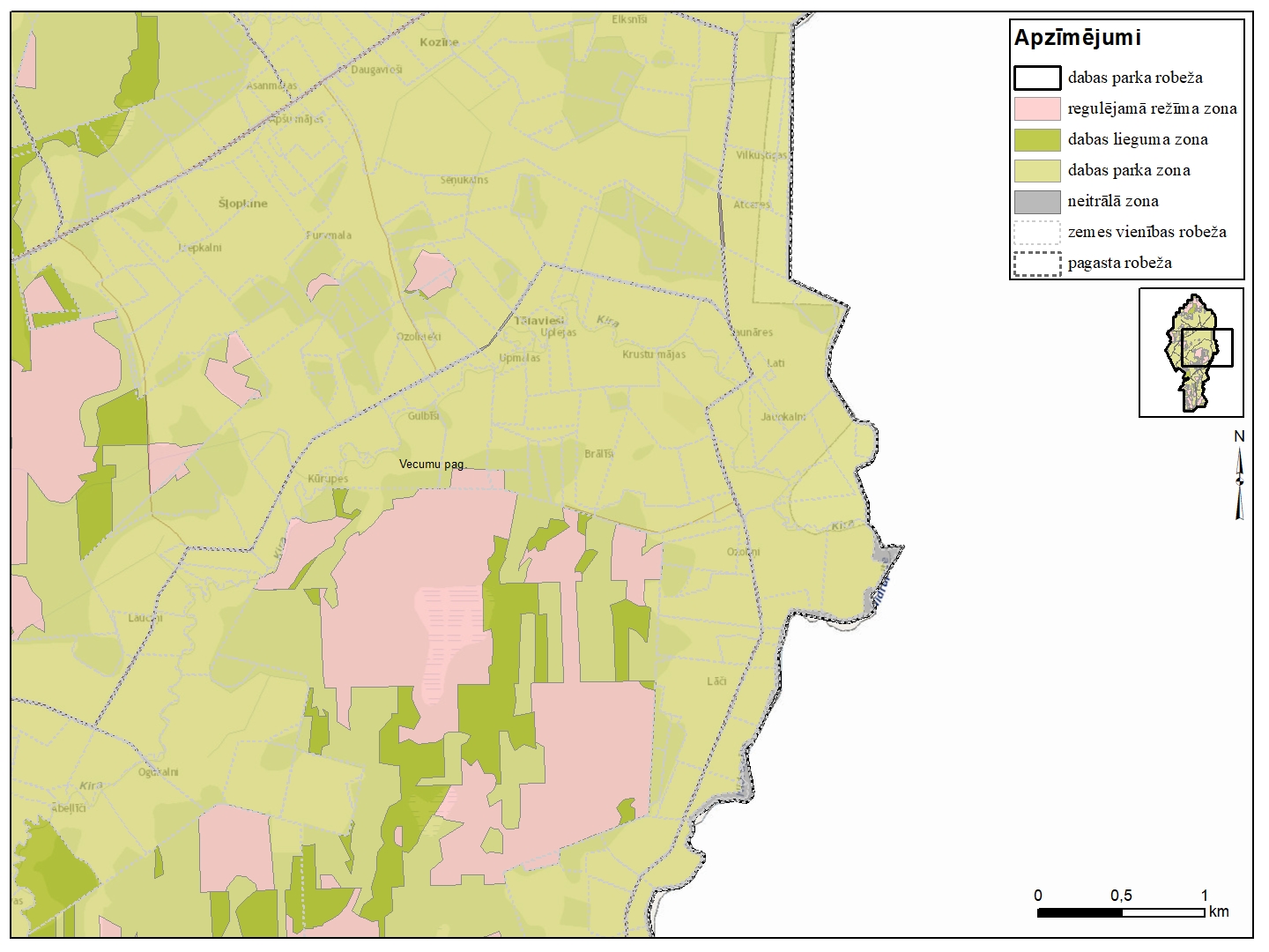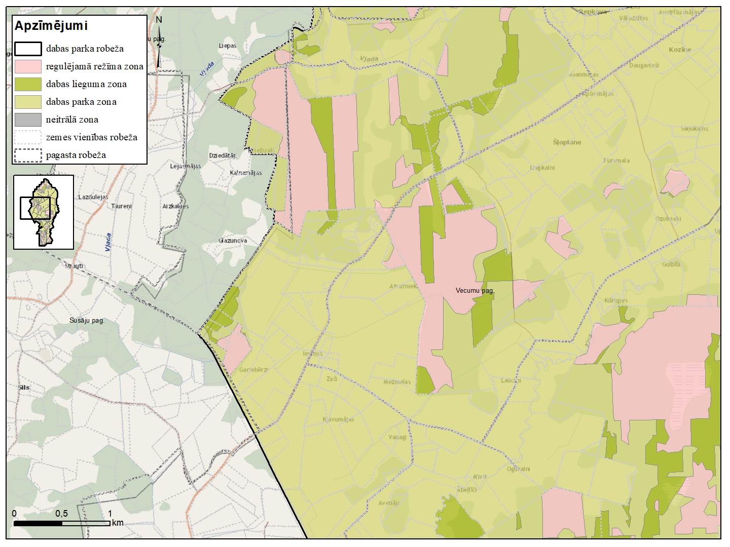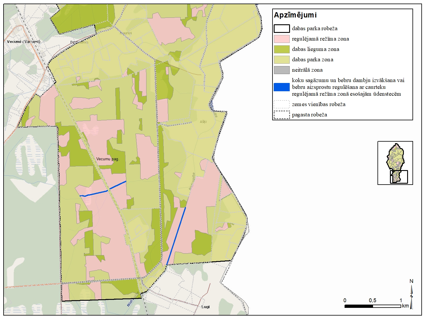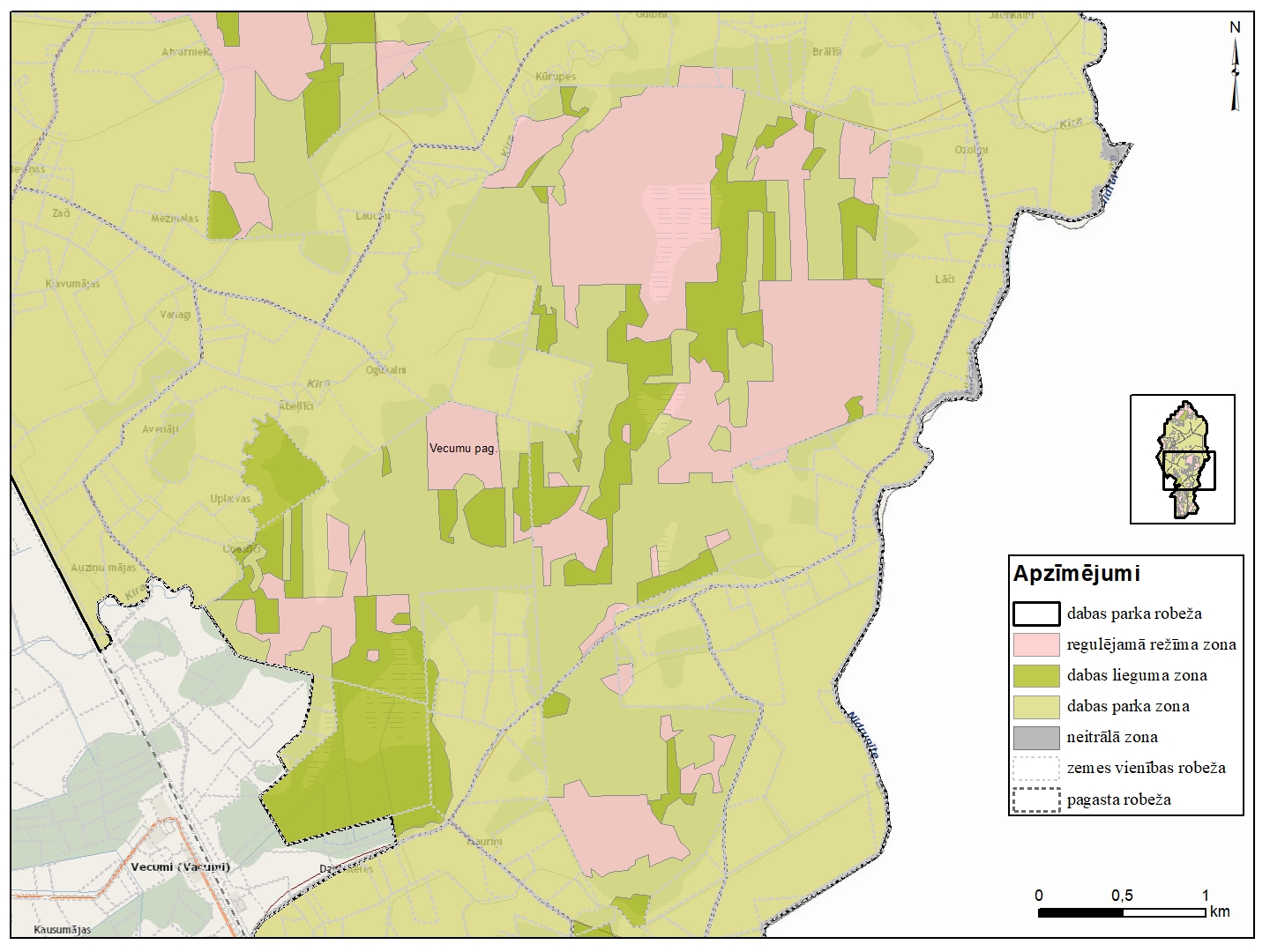 Dabas parka "Vecumu meži" funkcionālo zonu shēma