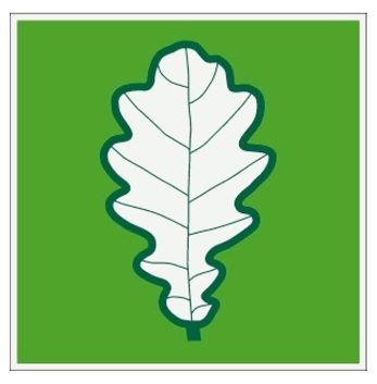 2.3. ozollapas piktogrammas kontūra un ozollapas dzīslojums – tumši zaļā krāsā (PANTONE 3425C vai C100 M0 Y78 K42, vai ORACAL ECONOMY 060 (dark green));
