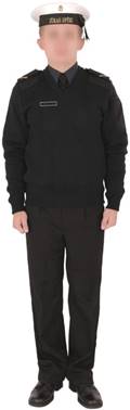 2.5.4. matrožu blūze un bikses melnā krāsā (13., 16. attēls);