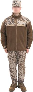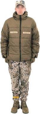 1.3.2. vēsu laikapstākļu kostīma jaka (6. attēls) brūnā krāsā ar detaļām no auduma ar maskēšanās rakstu "LatPat" vai "MultiLatPat" (1., 2. attēls) vai vienkrāsaina auduma detaļām bez maskēšanās raksta;