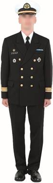 22. attēls. Jūras spēku virsnieku, virsnieču un instruktoru ziemas svētku un parādes formas tērps