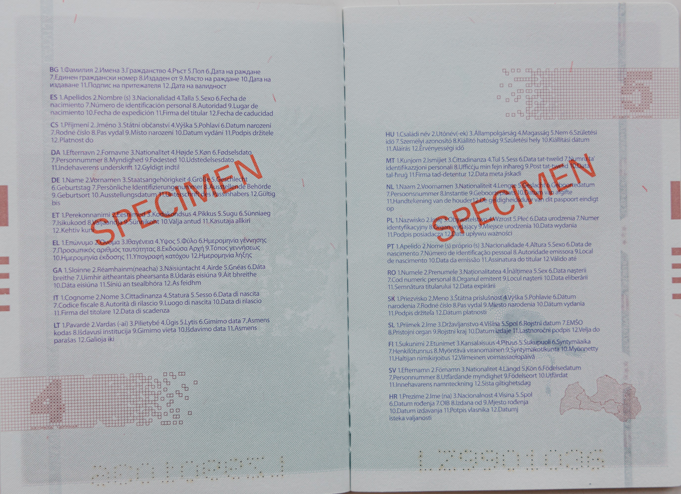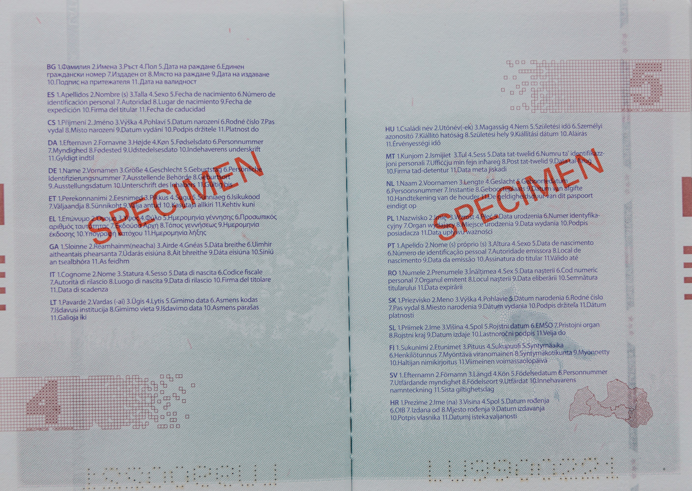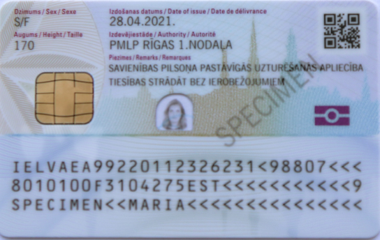 Personu apliecinoša dokumenta mašīnlasāmo zonu veido saskaņā ar Starptautiskās Civilās aviācijas organizācijas (ICAO) dokumentā Nr.9303 "Mašīnlasāmi ceļošanas dokumenti" noteikto. Personvārdu mašīnlasāmajā zonā norāda, nelietojot diakritiskās zīmes.
