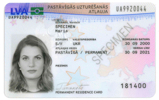 III. Personas apliecības averss (PASTĀVĪGĀS UZTURĒŠANĀS ATĻAUJA) (3. attēls)