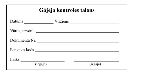 Gājēja kontroles talona izmērs – 70 x 100 mm.