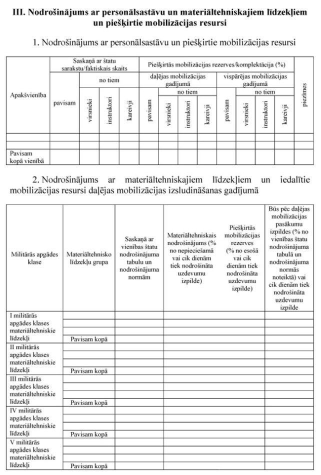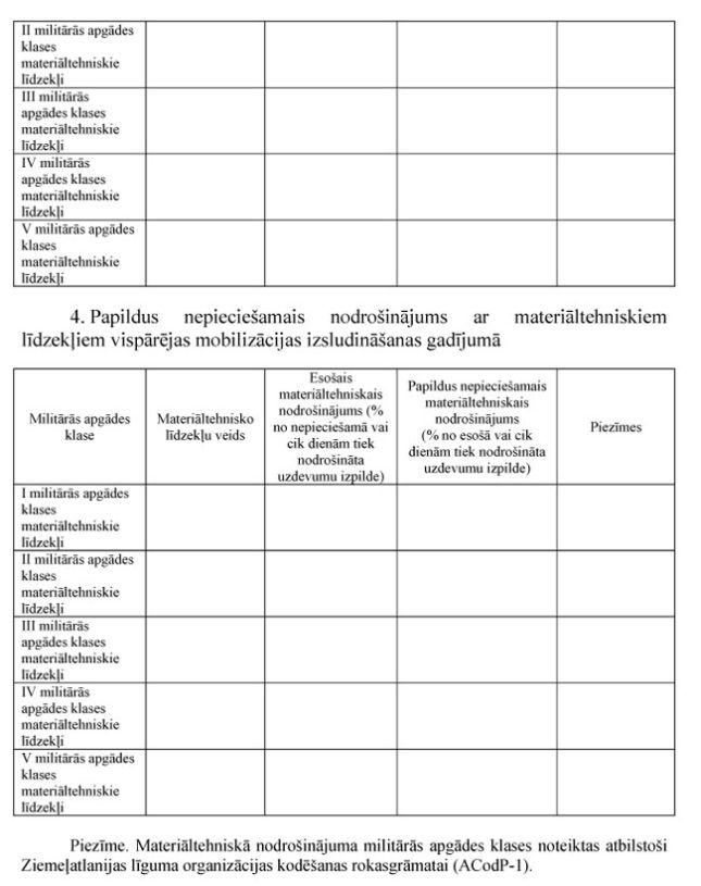 mobilizācijas plānu dokumentu veidlapu paraugus (1., 2., 3., 4., 6. un 7.pielikums);