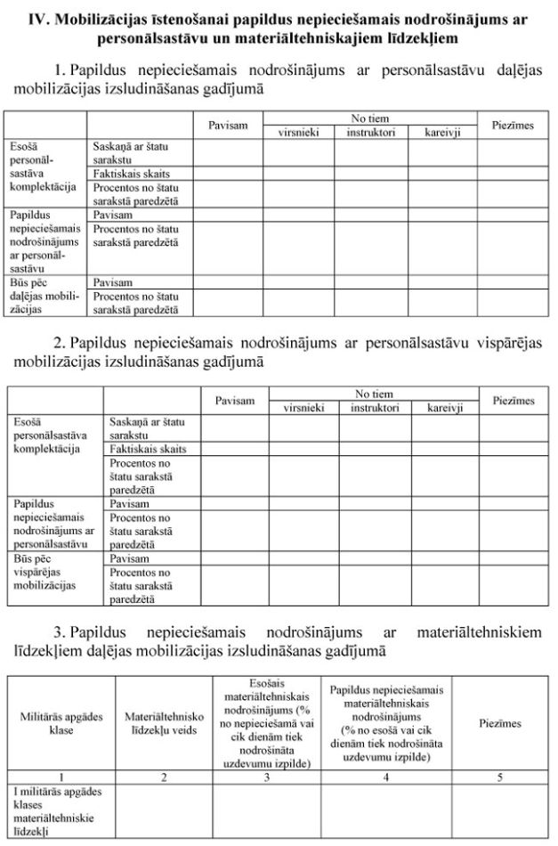 IV.Mobilizācijas plānu apstiprināšana un precizēšana