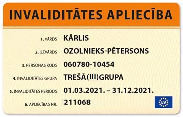 Invaliditātes apliecība ir derīga, to uzrādot kopā ar personu apliecinošu dokumentu.