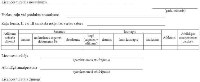 Pārskats par II un III sarakstā iekļauto vielu un zāļu saņemšanu, iepirkšanu, izsniegšanu, iznīcināšanu