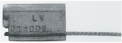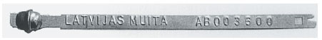 1.1. metāla lentes, kuras garums ir 21,43 cm, platums – 0,95 cm. Uz lentes ir uzraksts "LATVIJAS MUITA" un identifikācijas numurs, kas sastāv no diviem burtiem un sešiem cipariem;
