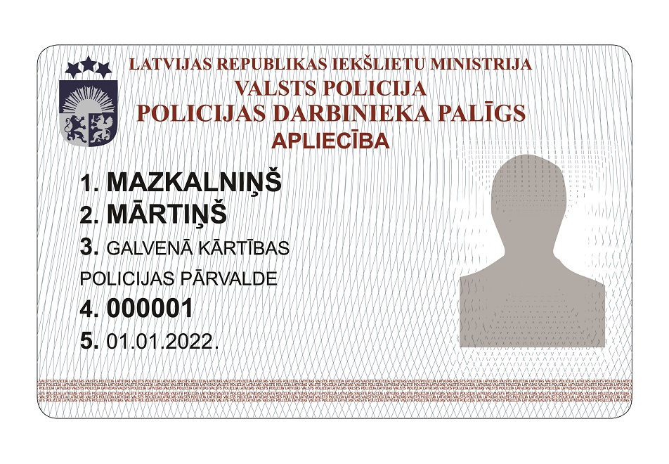 2. Policijas darbinieka palīga apliecības priekšpusē (aversā) ir šāda informācija: