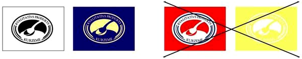 6. Zaļo norādi var attēlot arī melnbaltu vai izvēlēties citas kontrastējošas krāsas, kas iederas iepakojuma dizainā, izņemot bordo.