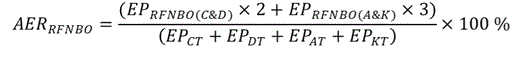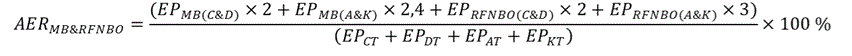 EPRFNBO - degvielas piegādātāja pašpatēriņam transportlīdzekļos izmantotais un patēriņam transportā realizētais nebioloģiskās izcelsmes atjaunīgās degvielas apjoms, kā arī no cita komersanta vienību apmaiņas mehānisma ietvaros iegādātais transportlīdzekļos izmantotais vai patēriņam transportā realizētais nebioloģiskās izcelsmes atjaunīgās degvielas apjoms, izteikts megadžoulos;
