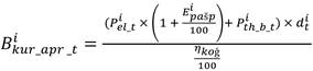 – patērētā kurināmā apjoms (MWh), kas nepieciešams komersanta koģenerācijas stacijas darbības nodrošināšanai, kalendāra gada t kalendāra mēnesī i. Nākotnes periodiem mēnesī patērētā kurināmā apjomu aprēķina kā pēdējo triju pilnu kalendāra gadu vidējo mēnesī patērētā kurināmā apjomu koģenerācijas stacijā;