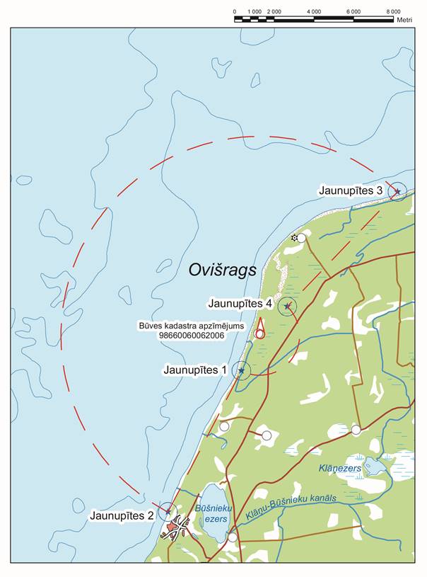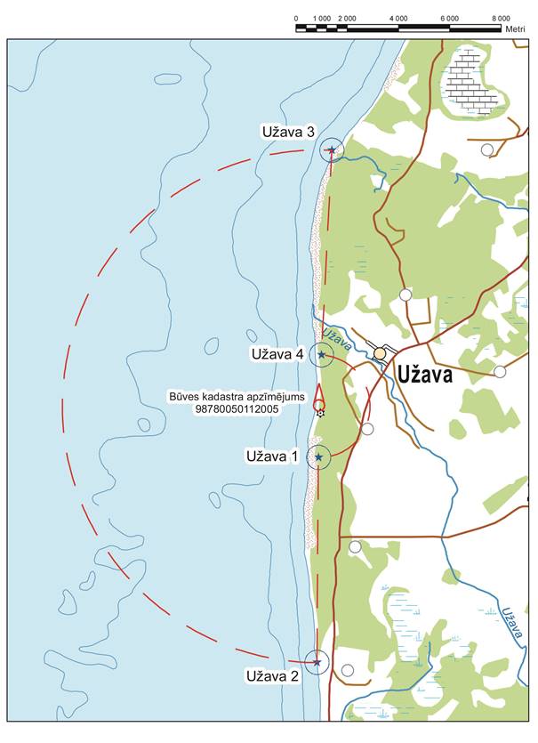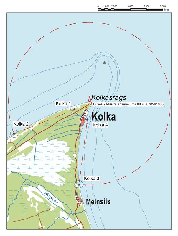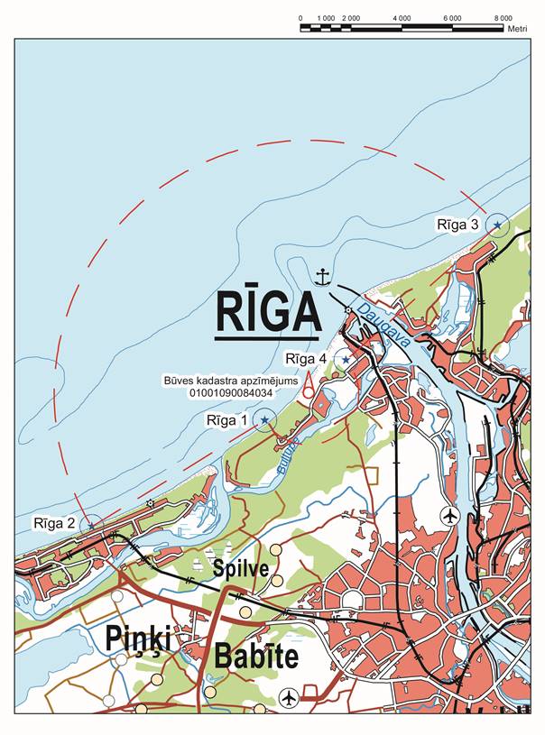 | 17. | 2.9 | Attālums no navigācijas līdzekļa centra 8 km | 221 | 388874,61 | 678895,54 |