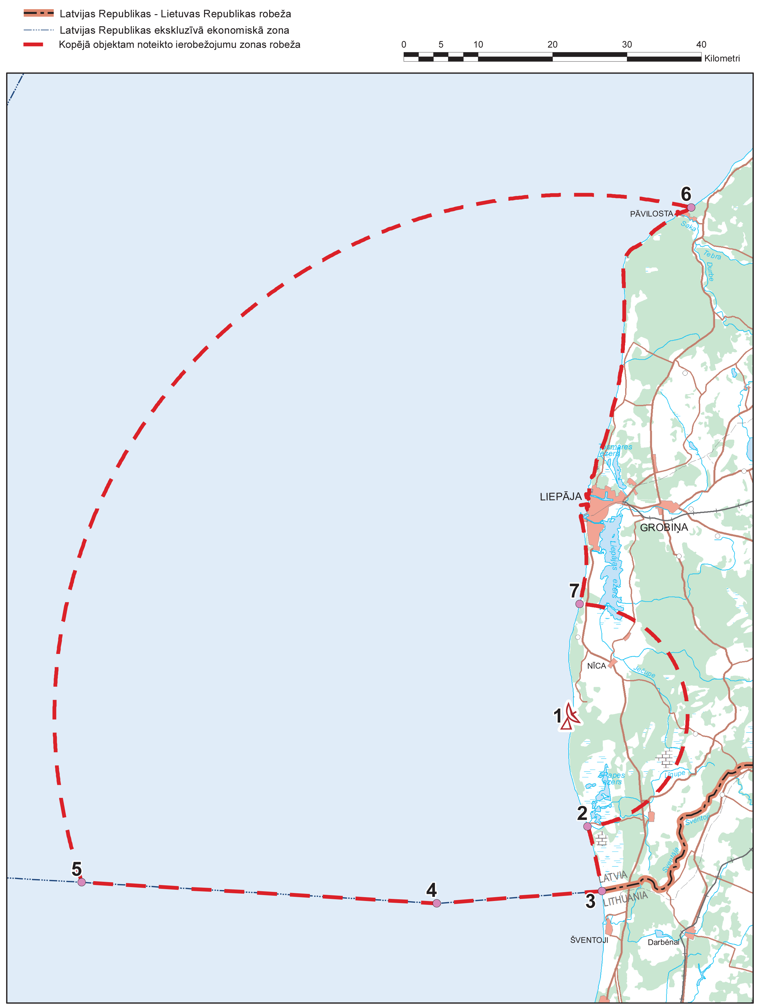| 40. | 2.24 | Attālums no navigācijas līdzekļa centra 14 km | 228 | 382095,33 | 696816,94 |