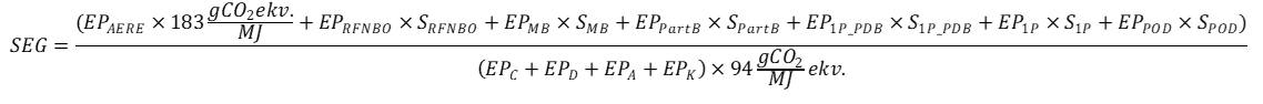 SEG - konkrētā kalendārā gada kopējais ar atjaunīgo transporta enerģijas nodrošinātais transporta enerģijas emisiju intensitātes samazinājums, izteikts procentos;