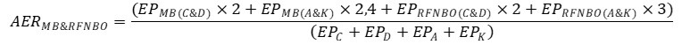 EPRFNBO - degvielas piegādātāja pašpatēriņam transportlīdzekļos izmantotais un patēriņam transportā realizētais nebioloģiskās izcelsmes atjaunīgās degvielas apjoms, kā arī no cita komersanta vienību apmaiņas mehānisma ietvaros iegādātais patēriņam transportā realizētais nebioloģiskās izcelsmes atjaunīgās degvielas apjoms (statistika), izteikts megadžoulos;