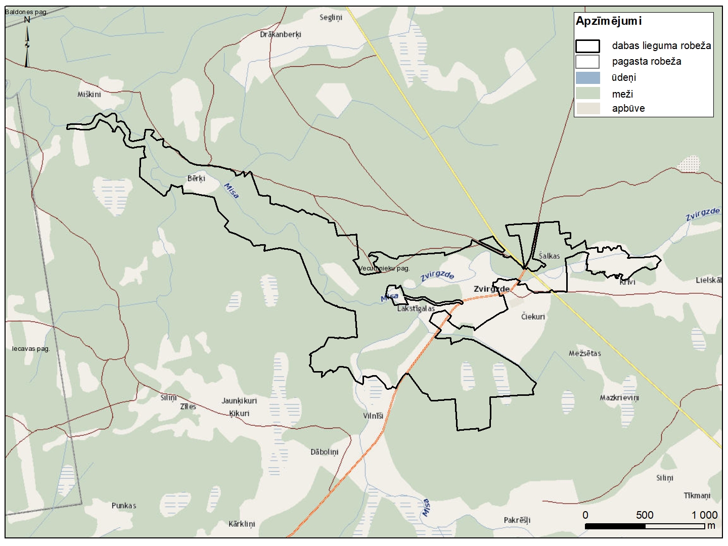 Dabas lieguma "Zvirgzdes meži un pļavas" robežu shēma